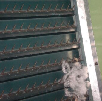 Teleras monoblocks en las abridoras y cargadoras para peinar y estirar las fibras. Son listones con púas montadas sobre una banda base como la BREDA 25CF. Los perfiles NE.C14 son termosoldados sobre la cobertura de la cinta. Posteriormente, las púas se colocan en forma U desde la cobertura inferior. Para alinear la telera, se pueden soldar perfiles guía en la cobertura inferior.